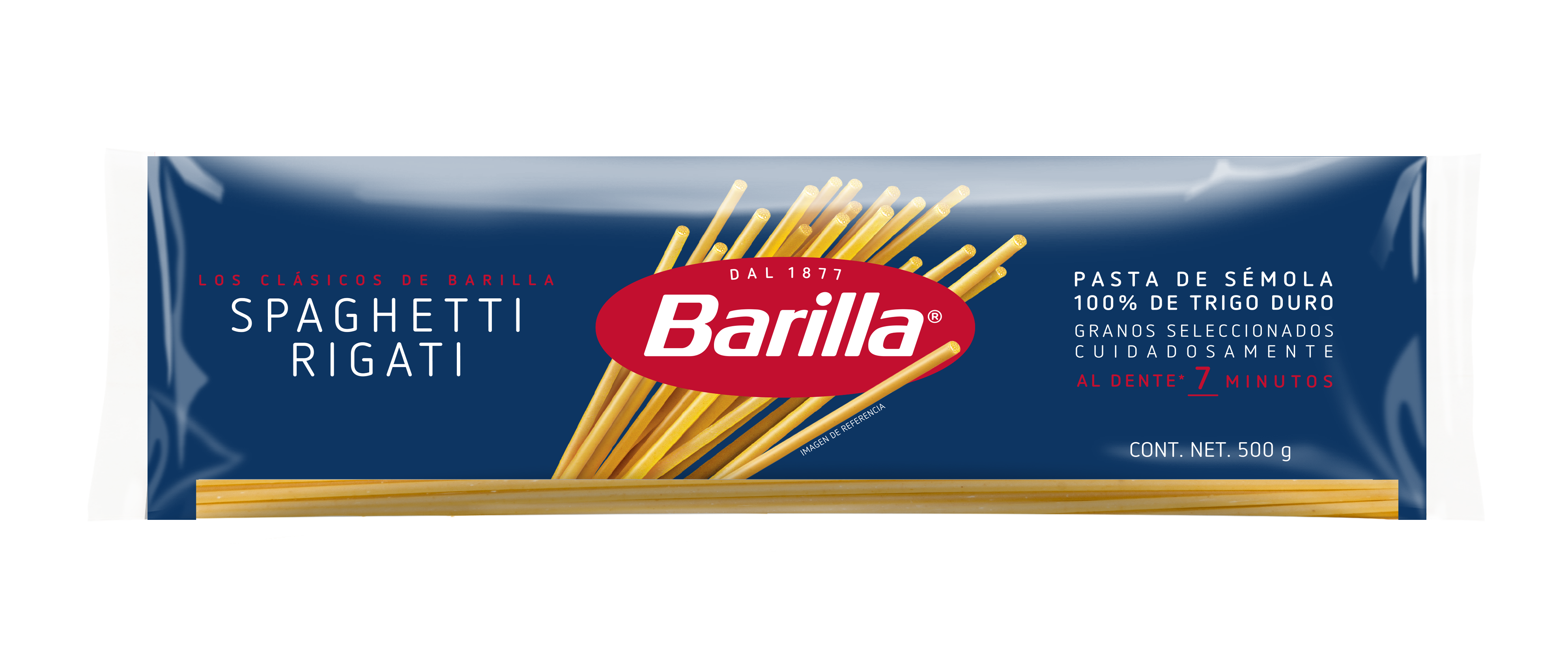 Los artistas de la pasta crearon este corte especialmente pensando en lograr que los sabores se acentuaran en cada platillo. Los Rigate (surcos) en la pasta hacen que se concentren mejor los sabores de las salsas, es por esto que en Italia adoran los cortes Rigate. Toda una nueva gama de recetas nace con el Spaghetti Rigate para que siempre pueda darle un giro moderno a una ya clásica receta.